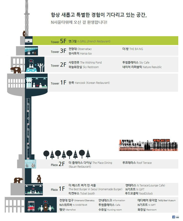 • 남산타워 T5층 전망대: 대인 21,000원, 소인 16,000원