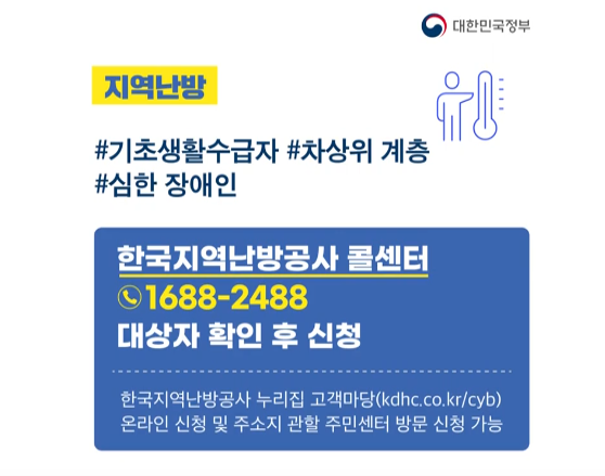 정부는 취약계층을 위해 '에너지바우처' 지원 사업을 실시하고 있습니다. 이 프로그램은 전기, 도시가스, 지역난방 고지서의 이용 금액을 차감하거나 국민행복 카드를 발급받아 에너지비용을