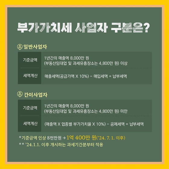 - 사업 설비 신설, 취득, 확장 또는 증축한 사업자: 사업에 필요한 설비를 구입하거나 사무실 인테리어 공사 등 큰 비용이 발생한 경우.