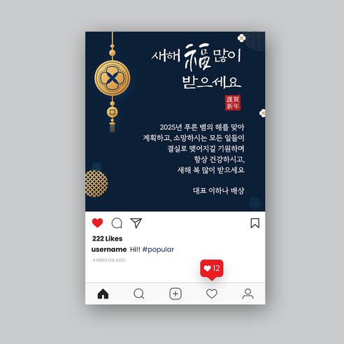 • "한 해 동안 보내주신 관심과 사랑에 감사드립니다. 새해에도 가족 모두 건강하시길 기원합니다."