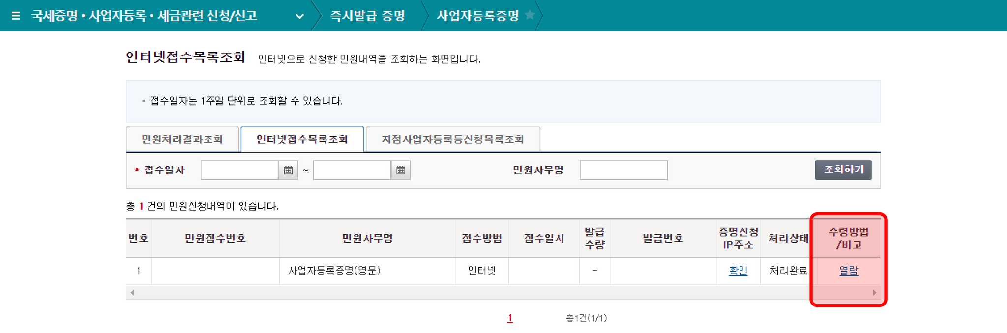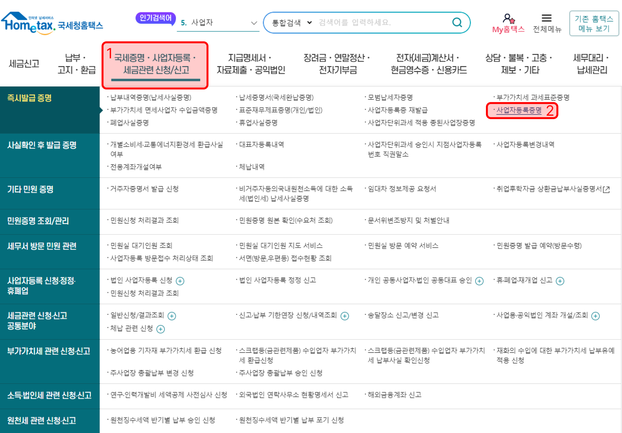 홈택스를 통한 영문 사업자등록증 발급 방법