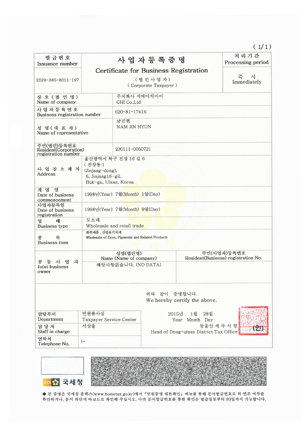 - 해외 수출입 거래 시 기업 인증 서류로 활용