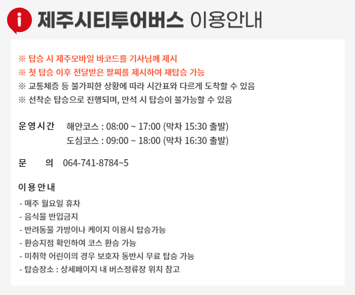 제주 시티투어 버스를 이용할 때 다음 사항에 주의해주세요: