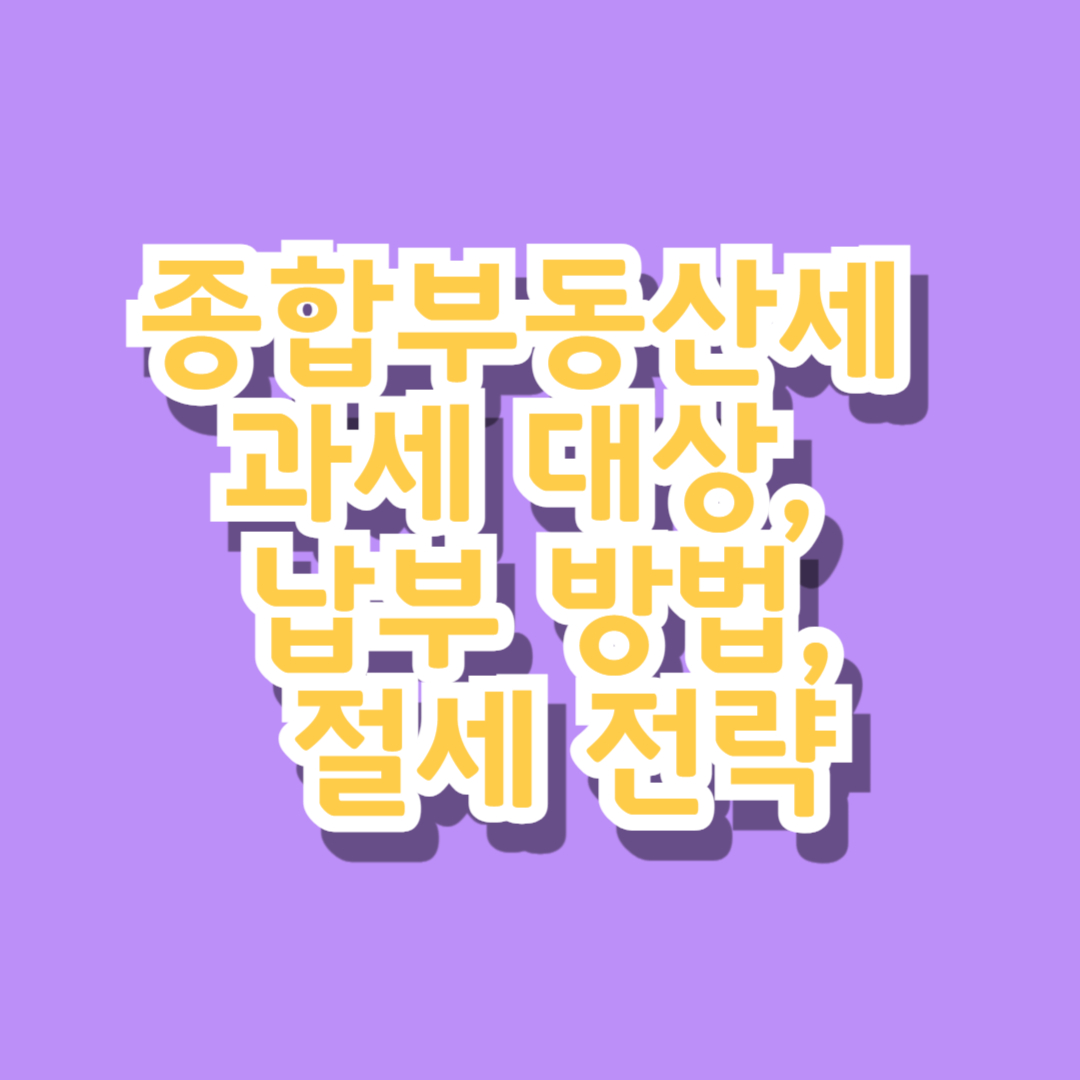 부동산 가격이 상승하면서 정부는 다양한 세금 정책을 통해 부동산 시장을 안정시키고자 노력하고 있습니다. 그 중에서도 종합부동산세(종부세)는 고액의 부동산 소유자에게 부과되는 중요한 세금입니다. 이번 글에서는 종합부동산세의 기본 개념부터 과세 대상, 납부 방법 및 절차, 그리고 절세 전략에 대해 상세히 알아보겠습니다.