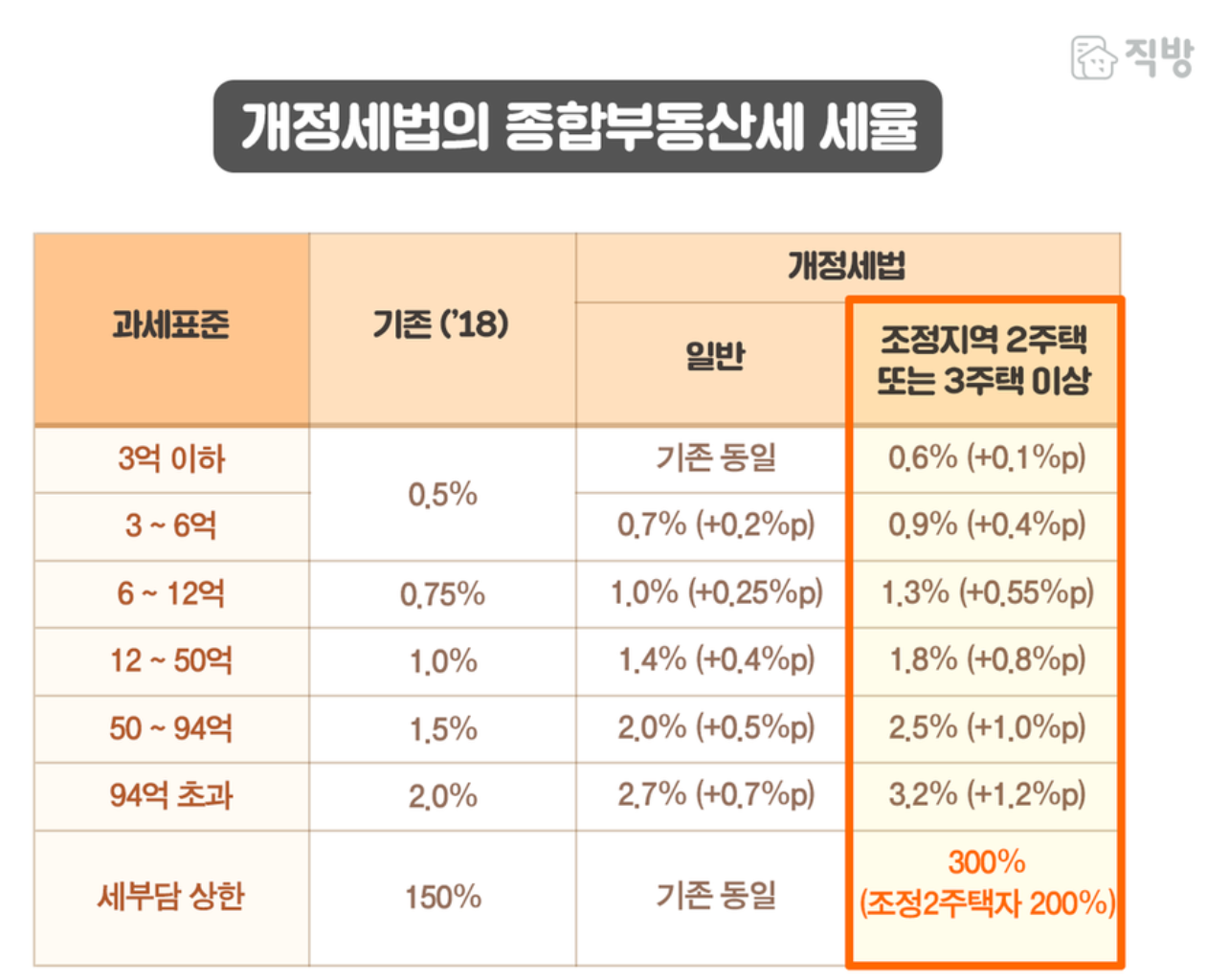 - 과세표준 94억 원 초과: 2주택 이하 2.7%, 3주택 이상 4.0%
