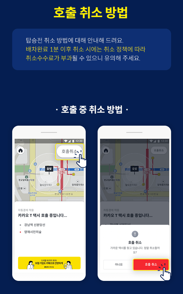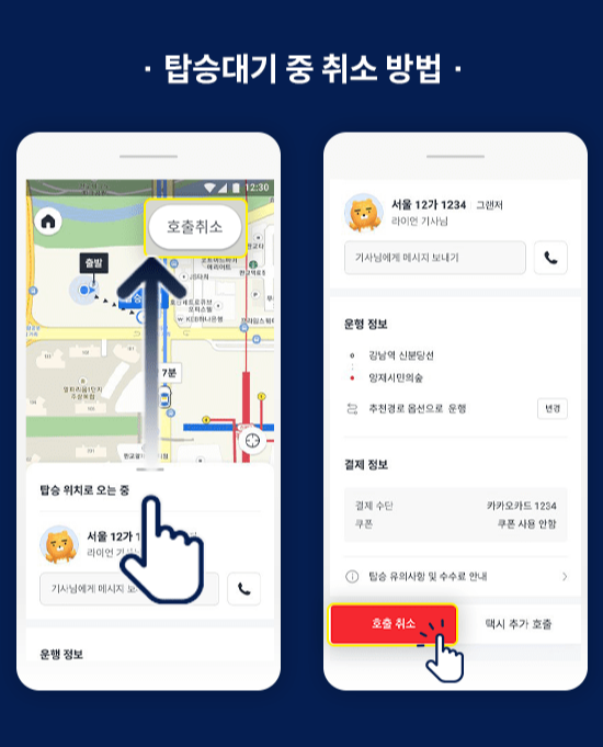 - 호출 취소는 신중하게! 취소 수수료가 발생할 수 있습니다.