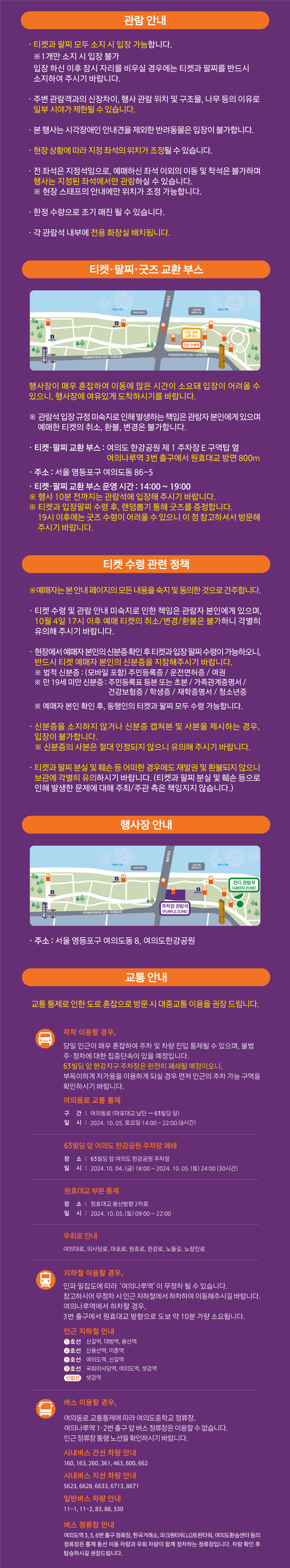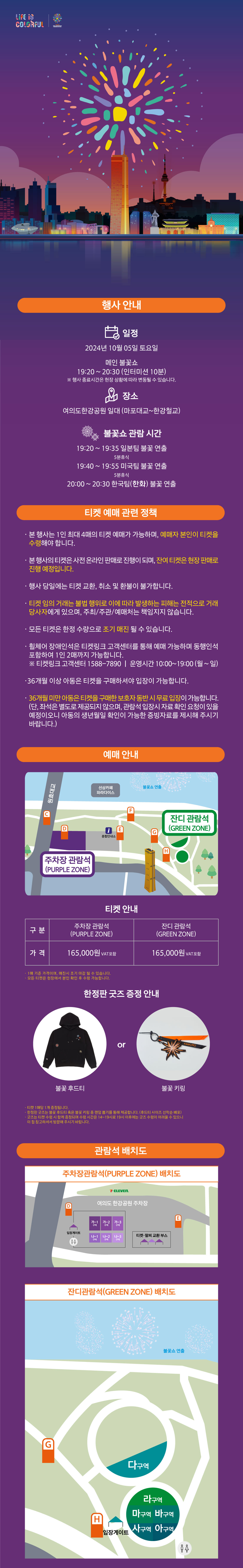 • 일시: 2024년 10월 5일 토요일, 13:00 - 21:30 (불꽃쇼 19:20 - 20:40)