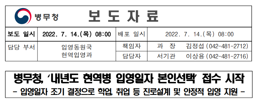 현역병 입영신청 기간과 방법