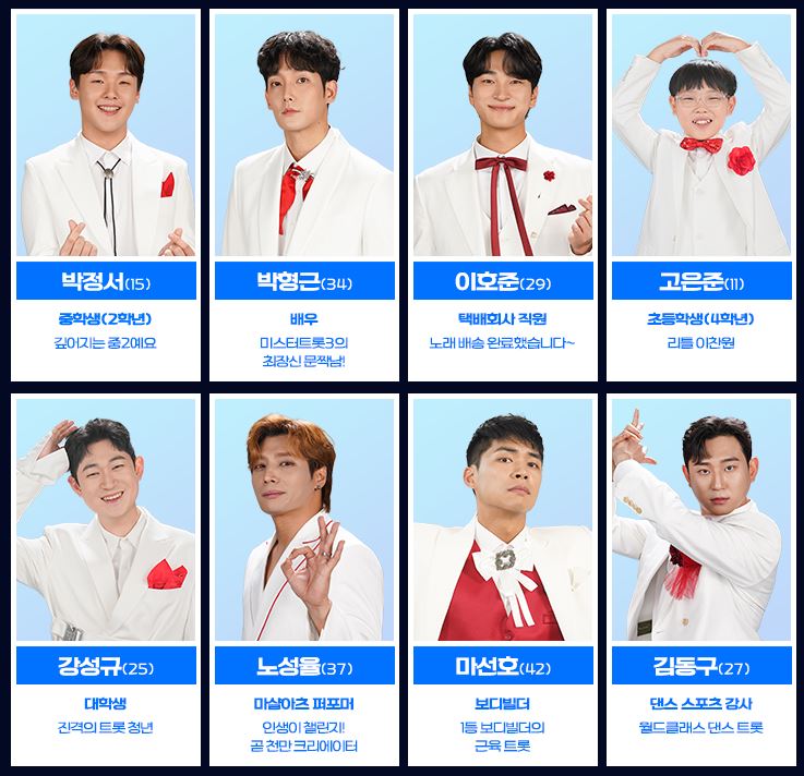 이번 시즌에는 다양한 배경을 가진 참가자들이 출연하여 더욱 풍성한 무대를 선보이고 있습니다. 한국 트로트의 현재와 미래를 보여주는 참가자들을 소개합니다.